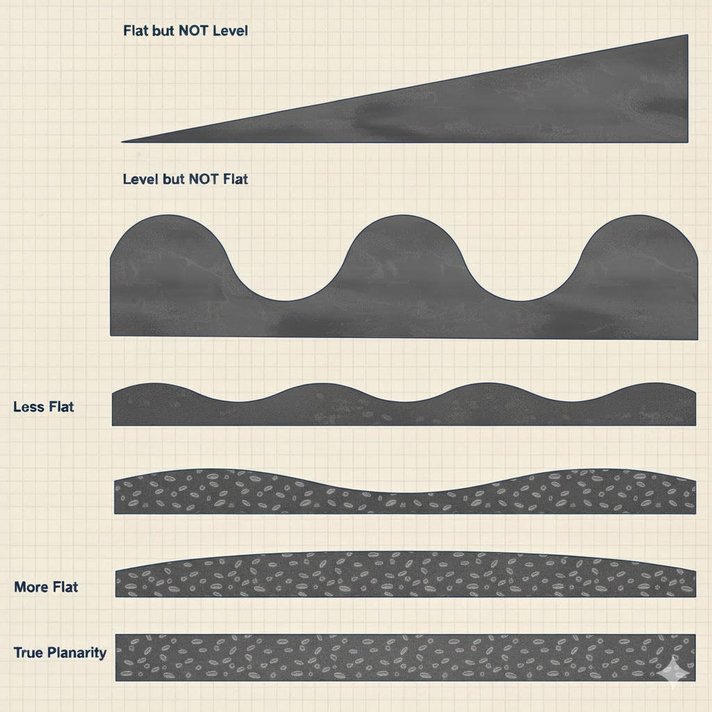 Levelness (FL): Measures the overall slope — how much the floor deviates over longer distances.